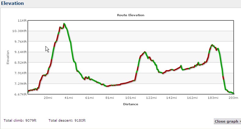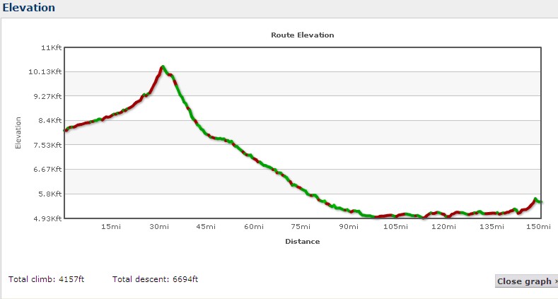 | Climbing | 37,000 ft. (11,200 m.) (RideWithGPS)