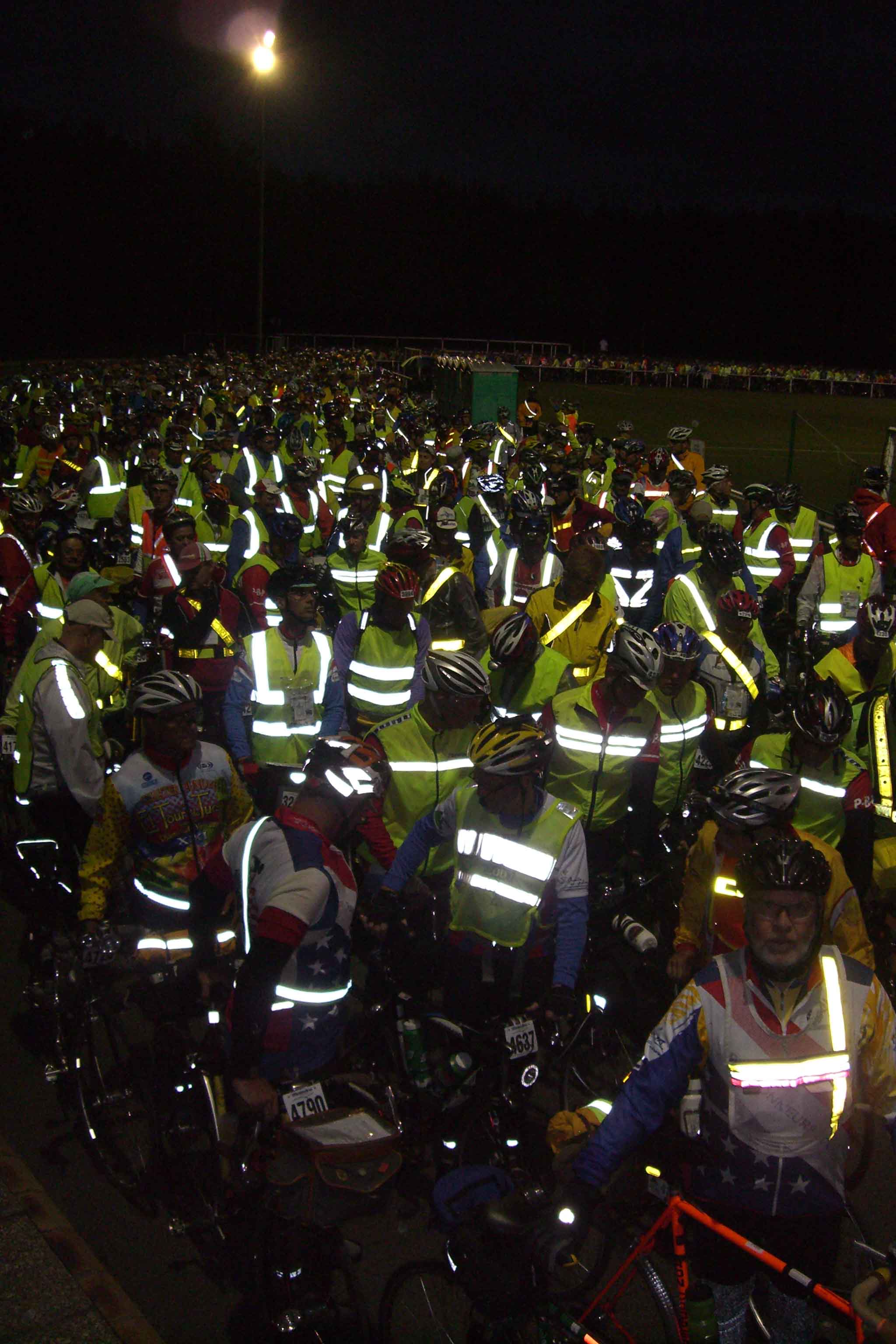Riders stage for final inspection and start