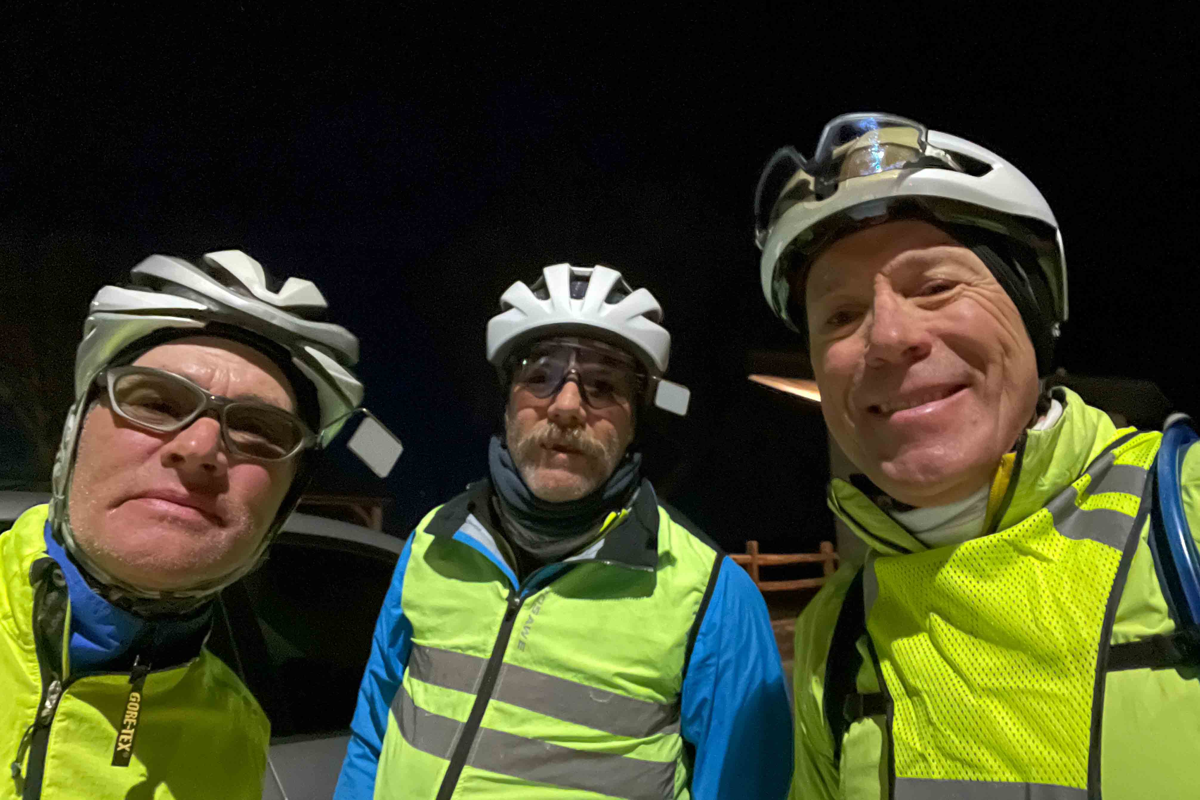 It was a reunion for 4 of 5 Original Lanternes Rouge 2015 Flèche members… too bad Pascal is suffering in miserable 70F weather in